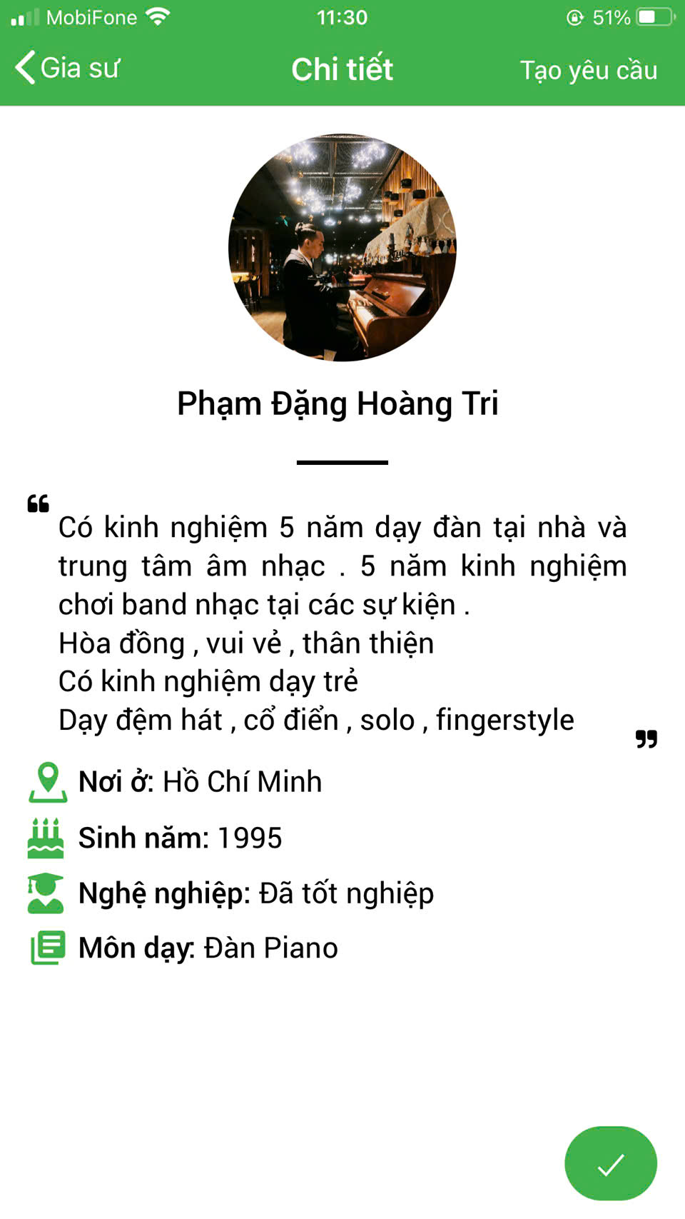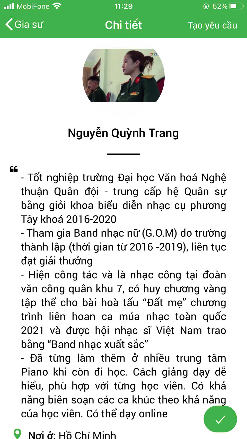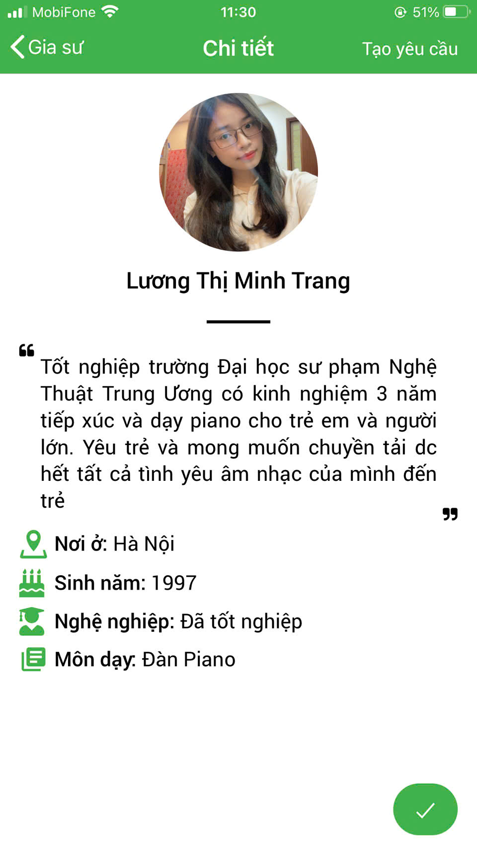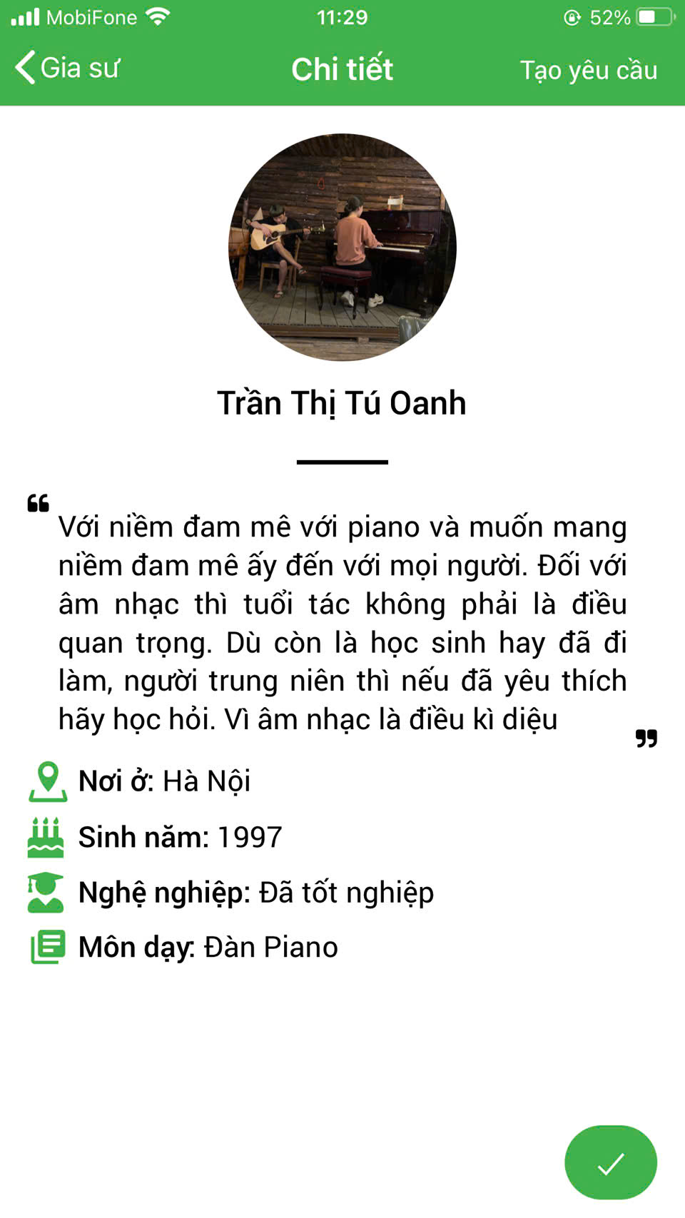 PHỤ HUYNH HỌC VIÊN XEM PROFILE GIA SƯ DẠY ĐÀN PIANO >>