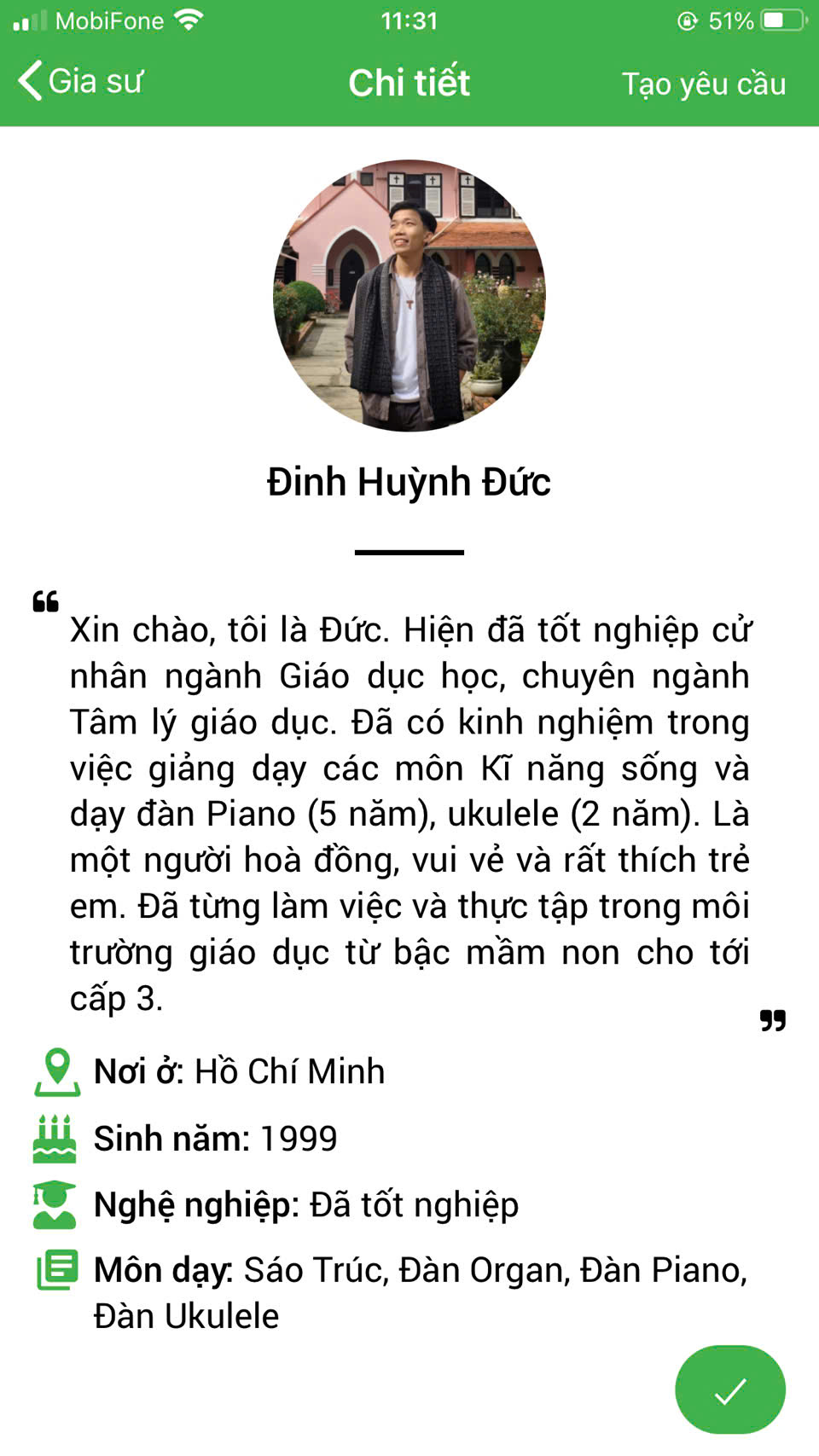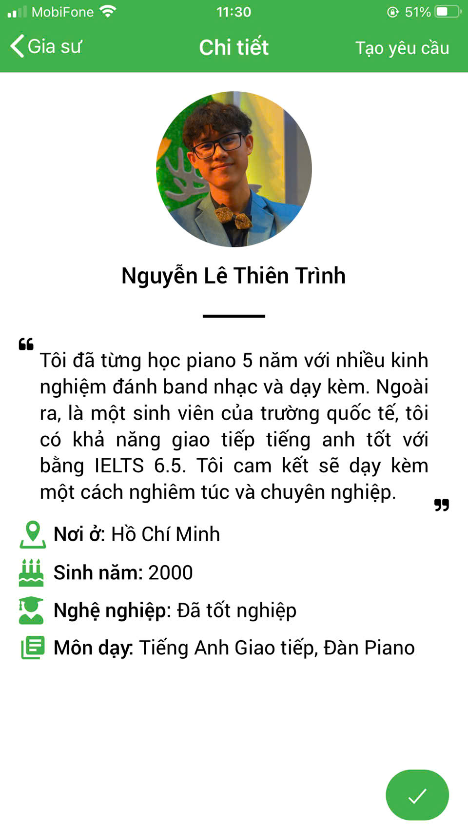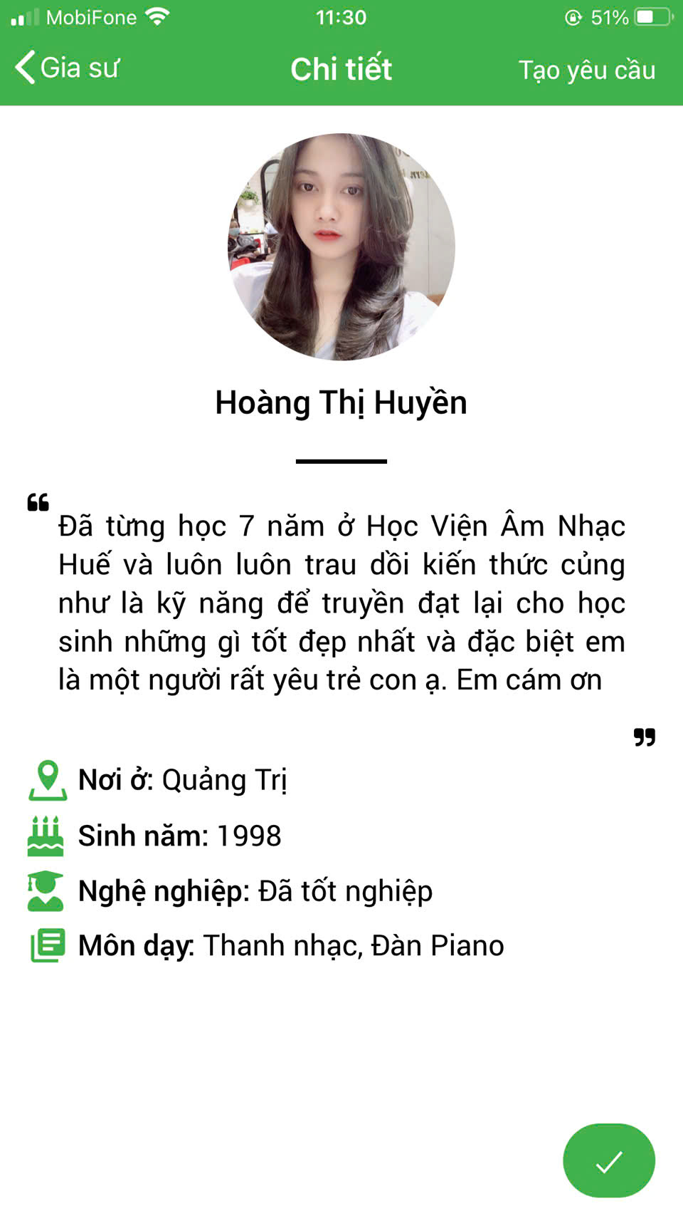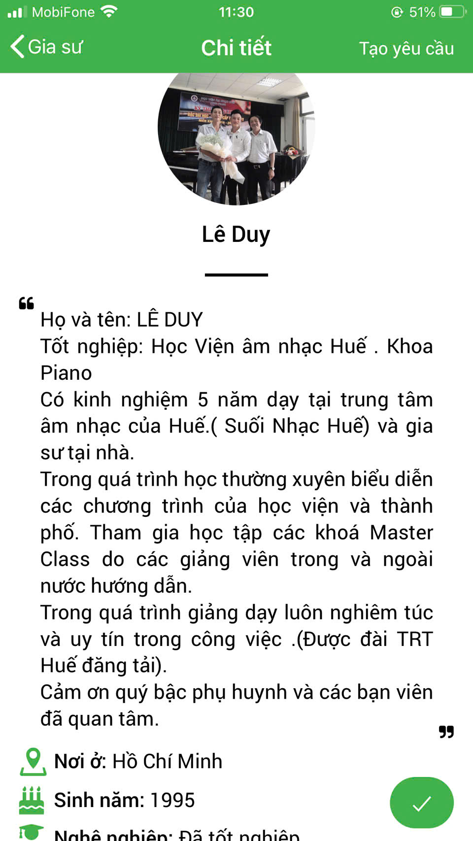 PHỤ HUYNH HỌC VIÊN XEM PROFILE GIA SƯ DẠY ĐÀN PIANO >>