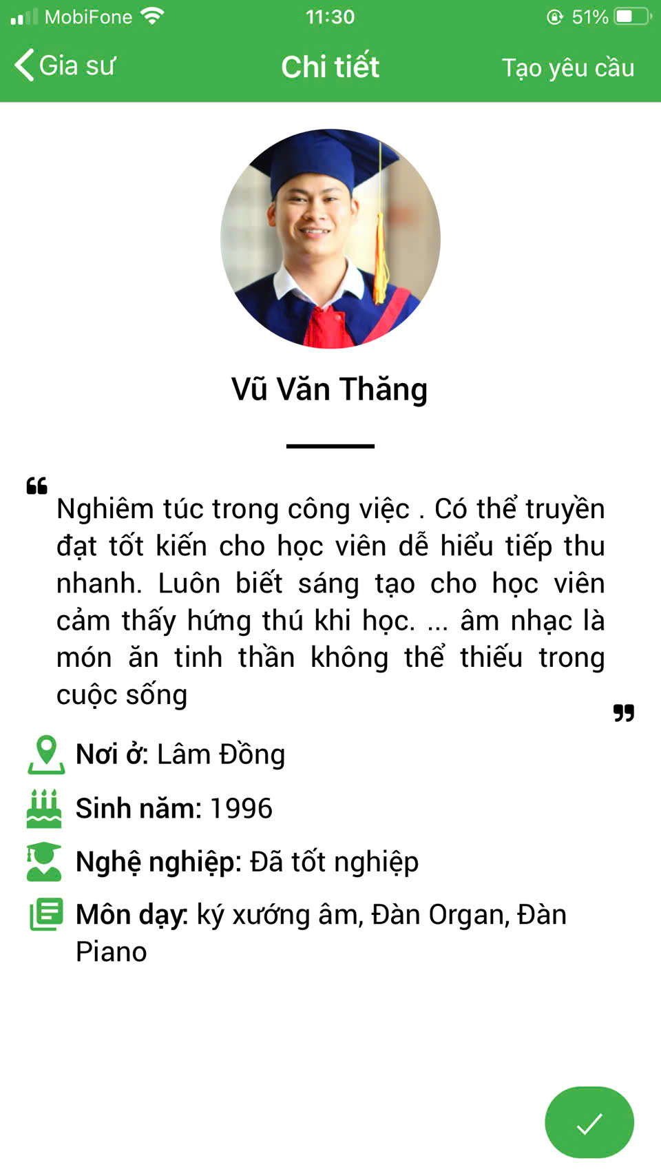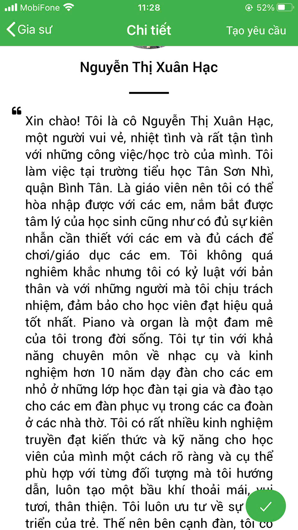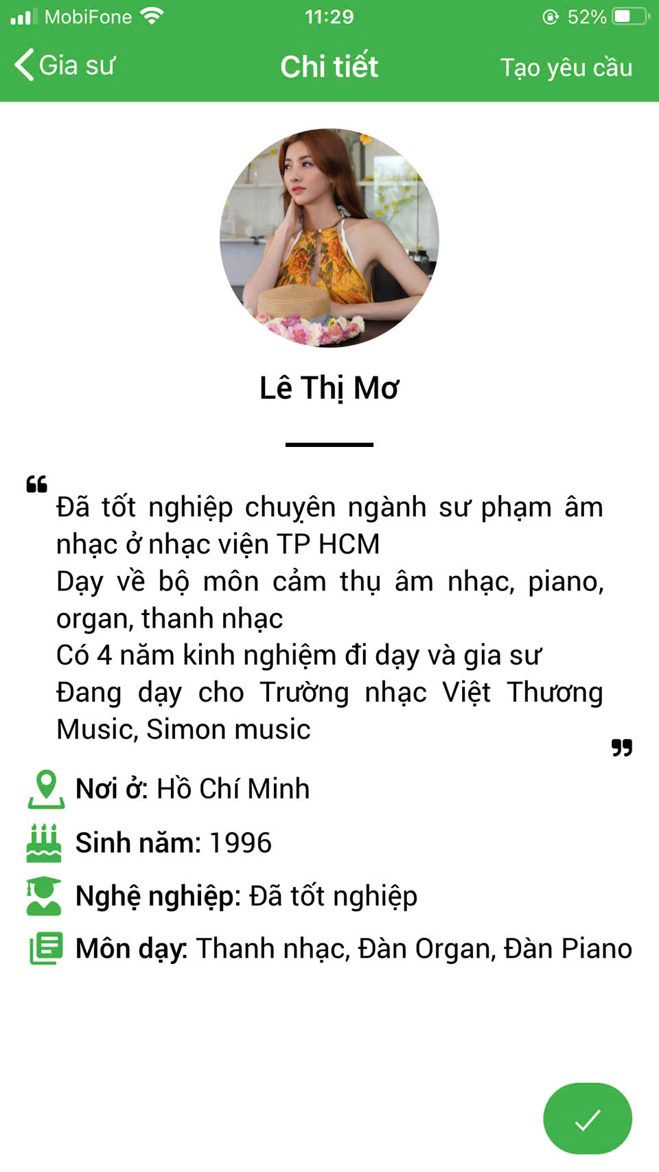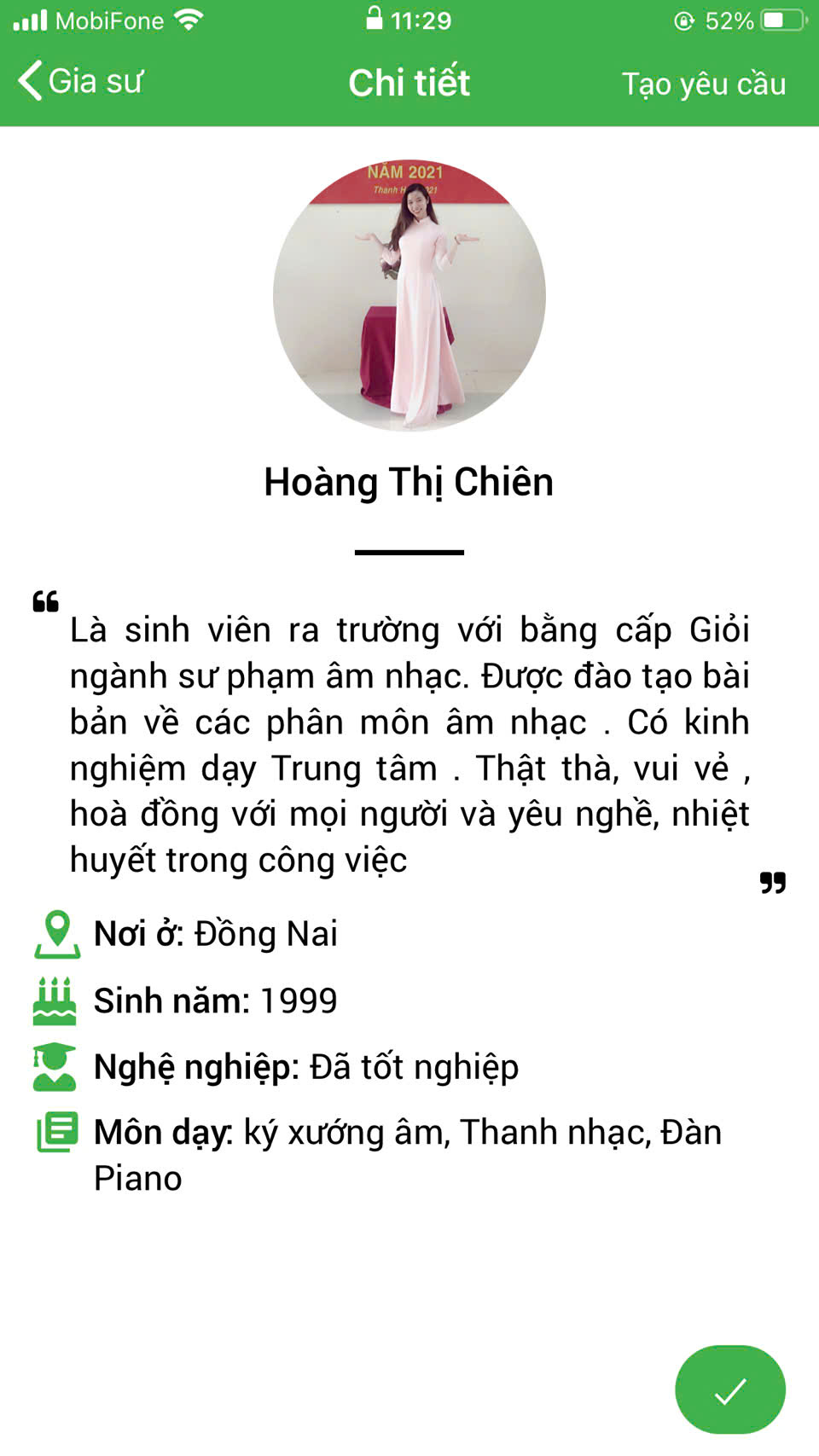 PHỤ HUYNH HỌC VIÊN XEM PROFILE GIA SƯ DẠY ĐÀN PIANO >>