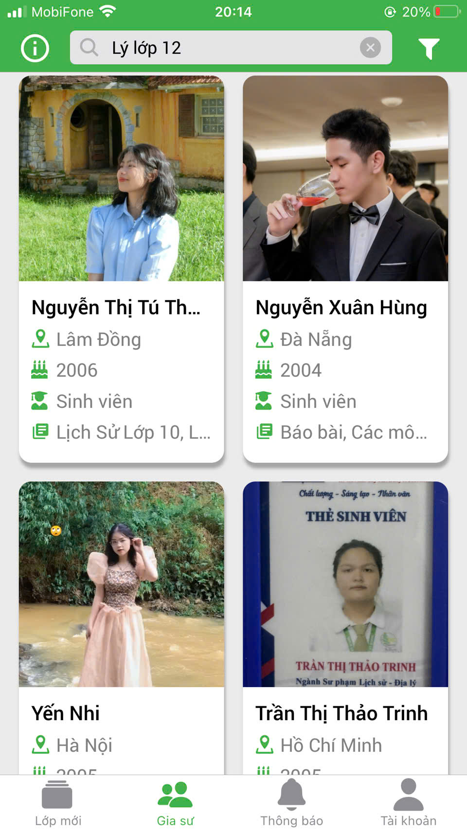 XEM THÊM NHIỀU PROFILE GIA SƯ DẠY KÈM MÔN LÝ TẠI HỆ THỐNG DAYKEMTAINHA.VN >>